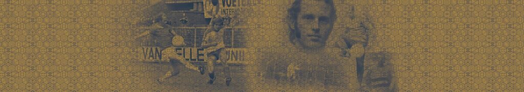 De achterwand toont iconische beelden van Oeki Hoekema, verweven met een grafisch patroon van hexagonen zoals die op klassieke voetballen voorkomen – dit benadrukt de ronde vorm van de bal. Binnen deze structuur zijn ook ronde vormen van voetballen geïntegreerd, wat zorgt voor een dynamische en sportieve uitstraling.