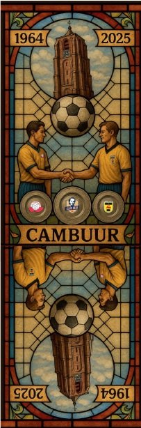 Deze glas-in-lood stijl afbeelding brengt een eerbetoon aan de rijke historie én de toekomst van SC Cambuur: